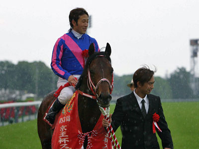 ![]() スーパーホーネットが京王杯V!(千葉で休養し、栗東入厩後19日目の勝利でした) |