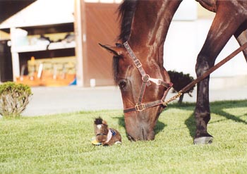 あら、あなたずいぶん小さいのね。どこのお馬?
